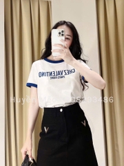 ☘️Chi tiết chữ CHEZ VALENTINO cá tính mix cùng váy đen nhấn chữ V tạo điểm nhấn nhẹ mà hút mắt.