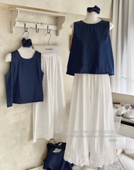 SET BI XANH XN MIX QUẦN SUÔNG TRẮNG KÈM BUỘC TOC