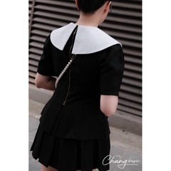 Chất vitex mềm mát _ Áo sơ mi phối cổ trắng to cách điệu cực xinh.